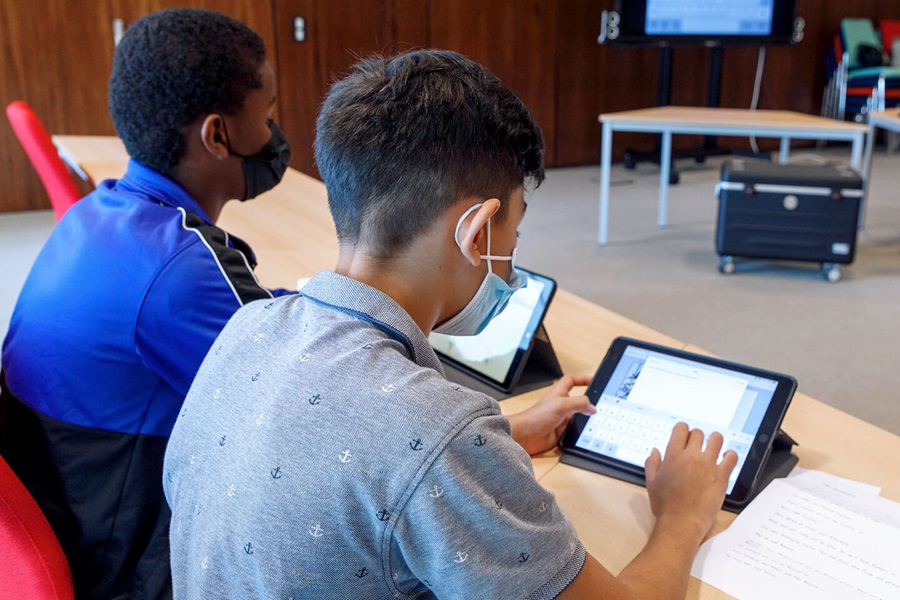Many pupils at Theodor Wuppermann School in Leverkusen had to leave their home countries because of war. They are supposed to learn German in special support groups within two years. Thanks to a Covestro donation, the school can now use 32 iPads in remedial classes. The tablets help the children to learn German playfully and intuitively at their own pace. This is another important step for the integration in their new environment.