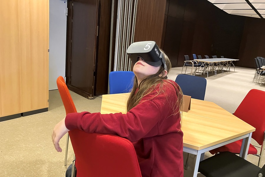 Thanks to a donation from Covestro, the media studio has had a total of 30 virtual reality glasses (VR glasses) in its inventory since October 2023. Students can now familiarize themselves with digital technologies early on and immerse themselves in entirely different worlds. The VR glasses and their applications enable a completely different way of imparting knowledge – they make the teaching and learning process more active, emotionally engaging, and practical.