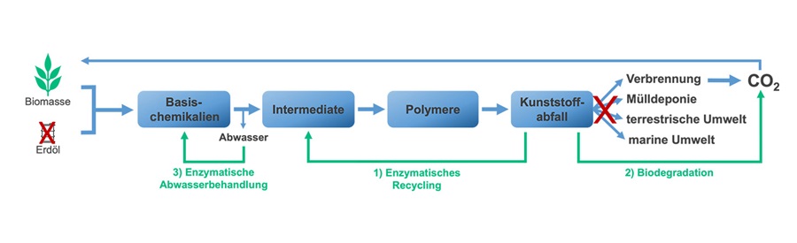- das enzymatische Recycling von Kunststoffaltprodukten und Plastikabfällen