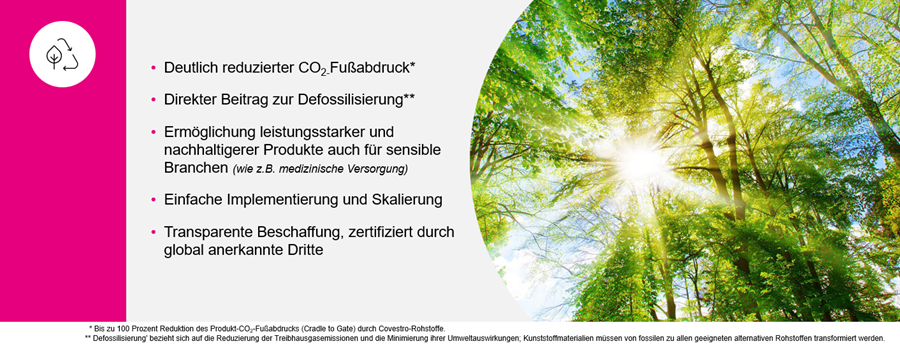 Damit schafft Covestro nachhaltigen Wert und einen Wettbewerbsvorteil, indem es den immer dringenderen Bedürfnissen von Verbrauchern, Regierungen und Investoren nach Klimaneutralität und Kreislaufwirtschaft von Materialien gerecht wird.