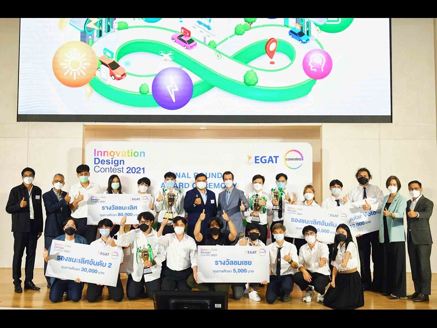 The Covestro Innovation Design Contest 2021 (IDC 2021) had announced the winners from the finalist teams which their ideas for “EV Charging Station” under the theme “Recharge to a Fully Circular Way” are all innovative. creative, sustainable and possible to develop it for real application. Covestro (Thailand) joined hands with the Electricity Generating Authority of Thailand (EGAT) to give the opportunity for undergraduate students nationwide showcased their ideas and innovative creativity to win the prize and scholarship all worth over 185,000 Bath. In this final round, the judge panels are from various organizations including Mr. Warit Rattanachuen, Assistant Governor - Project Management Office from EGAT, Mr. Pichit Pongprasert, Head of EV Commercial Business from EGAT, Mr. Channarong Kaenthong, Vice President of the Architect Council of Thailand. Experts from Covestro, Ms. Khawissara Wattanapisit, Head of Communications – ASEAN and Mr. Chaiyut Changjenrob, Polycarbonates Plant Manager, were also on the judging committee.