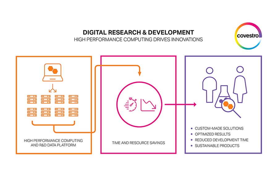 Covestro is cooperating with established IT companies in this project. This will significantly accelerate complex research and development processes in the future. Another advantage is that test series can be simulated on the computer on a much larger scale. This will noticeably shorten the time it takes to launch groundbreaking innovations on the market. In addition, the overall process becomes more sustainable because energy and material consumption in experimental work is reduced.