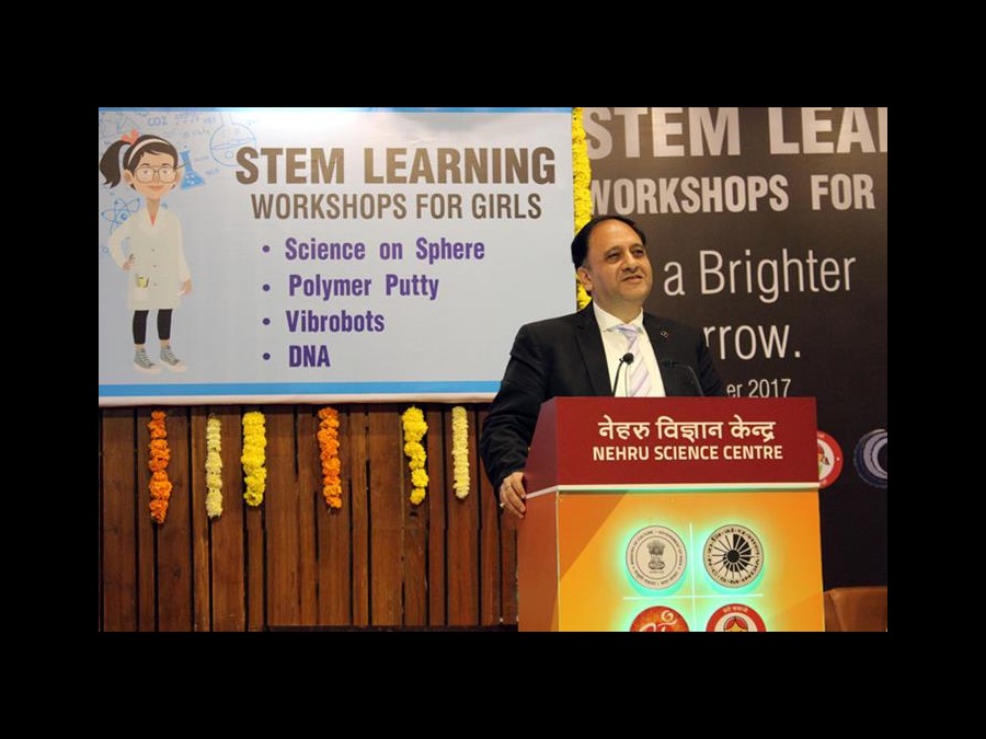 Covestro (India) amplified its steps towards encouraging girl child to pursue careers in Science Technology Engineering Maths (STEM) with its 2nd edition of STEM workshop in Mumbai. The week long workshop beginning 8th November 2017 is being organised along with Greenlight4girls, Nehru Science Center, Ministry of Culture, Mumbai and Chandramohan Foundation. The workshop is highly interactive and has 3 experiments in addition to a novel session ‘Science on Sphere’. Experiments on Human DNA give the chance to girls students to see their own DNA and not only that, some of them also wore it as a unique necklace. Experiment of Polymer Science explores the magic of mixing two different chemical compounds or naturally occurring polymers and watch it transforms into a new product, Polymer Putty. In the amazing Vibrobots workshop on electronics, the girls will make their own mini robots and watch it spin.