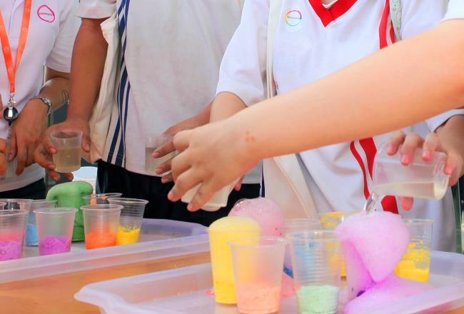 Wow! Lots of bubbles keep coming out of the cup like a fountain! Baking soda and white vinegar are common household cleaning helpers in our daily life. You can see the gorgeous rainbow fountain appear in front of you by combining both and adding vivid colors!