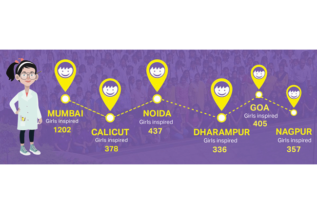 Instead of textbook knowledge, STEM focuses more on practical learning and experiments. The girls started their day with a motivational session from popular women scientists who shared their experiences of being in this field and made the girls realise the vast opportunities in the field of STEM. This was followed by hands-on fun experiments with 30 girls in one workshop and 3 workshops throughout the day.