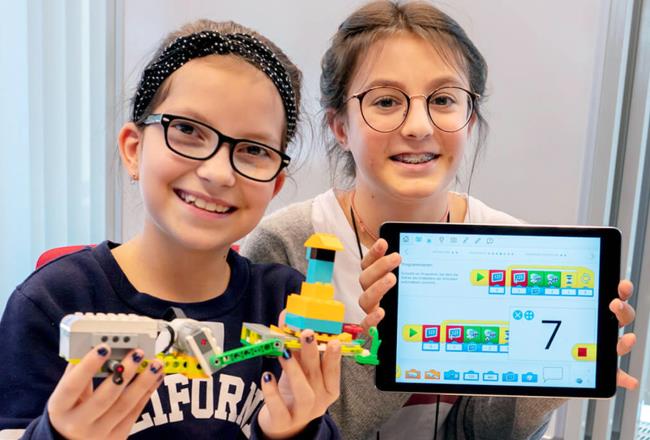 This allows them to program Lego robots, for instance, which then automatically move blocks from A to B to load and unload them. Students learn basic digital skills and more challenging programming abilities in a entertaining manner. Teachers also benefit from it. They can decide which devices and programs are suitable for their lessons.
