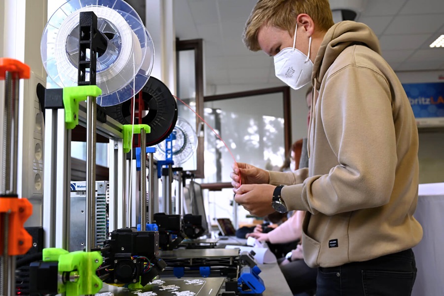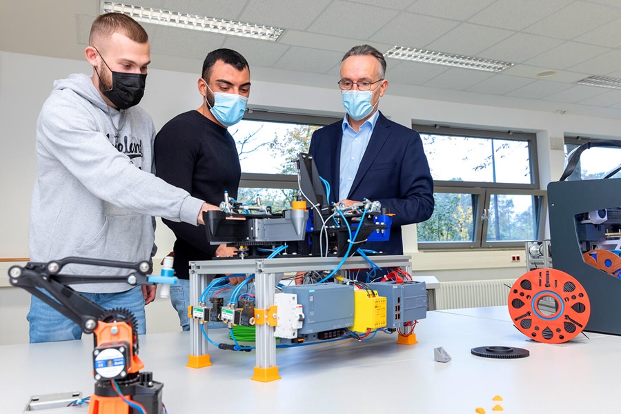 Pupils at Berufskolleg Uerdingen learn how an industrial plant works in project-oriented lessons in the field of automation technology. One of the tasks is to build and program a mini plant, in which ordering, production planning and manufacturing are automatically interlinked. Covestro donated a 3D printer and control elements to get the project started. Pupils can now create further Industry 4.0 mini plants that build on the prototype.