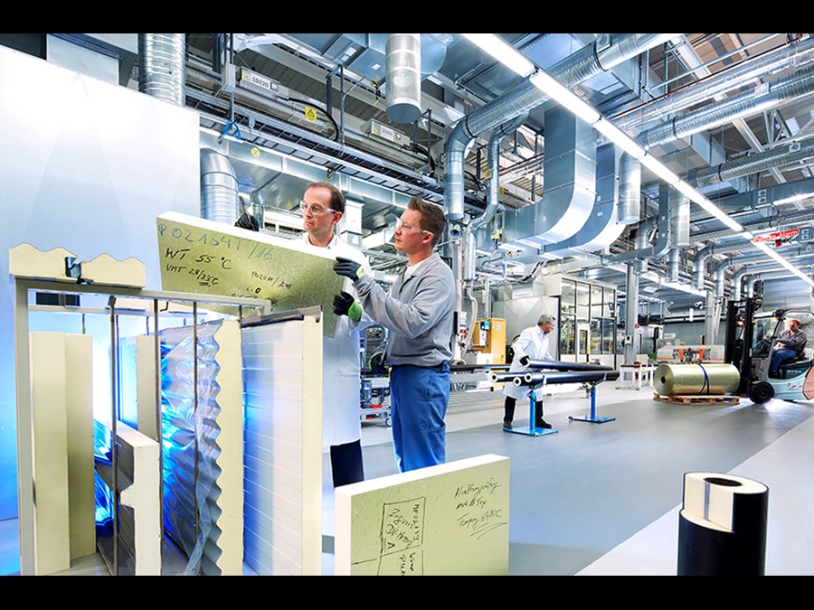 Among other things, the technical center houses continuously operating equipment for the production of insulation panels and "sandwich panel" elements. Rigid PU foam is a very high-performance insulation material and is ideal for reducing energy consumption and CO₂ emissions from buildings. This does not only protect the environment, it also protect fossil resources.