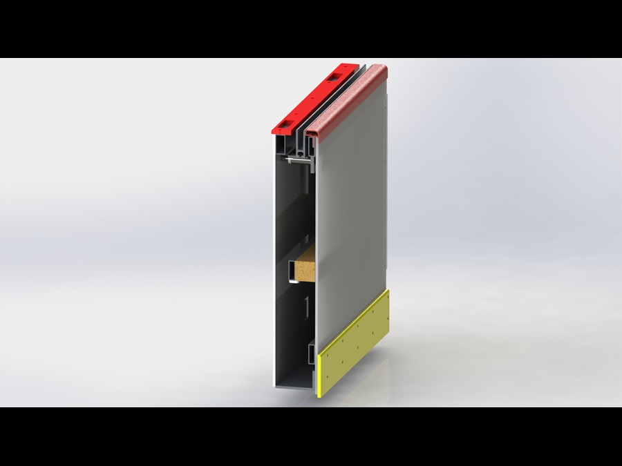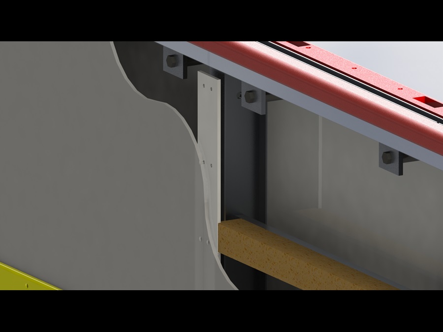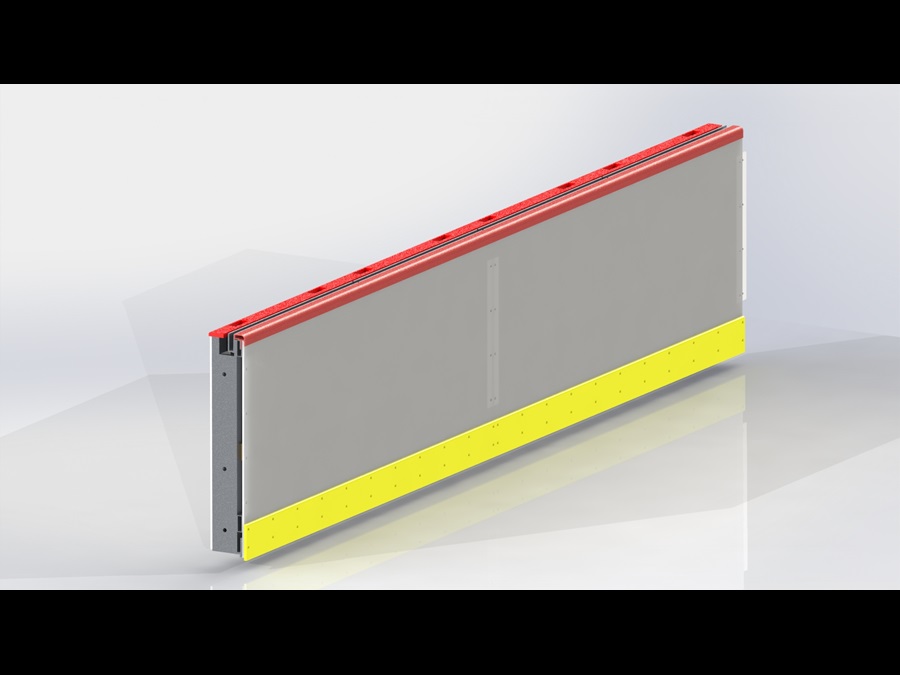 The reimagined dasher board design has increased flexibility and movement with a new facing material comprised of our Makrolon® polycarbonate sheeting over an aluminum frame with a polyurethane foam dampening element. This combination allows the boards to flex when hit with body mass but remain stiff when hit by pucks. Renderings courtesy of Athletica Sport Systems.