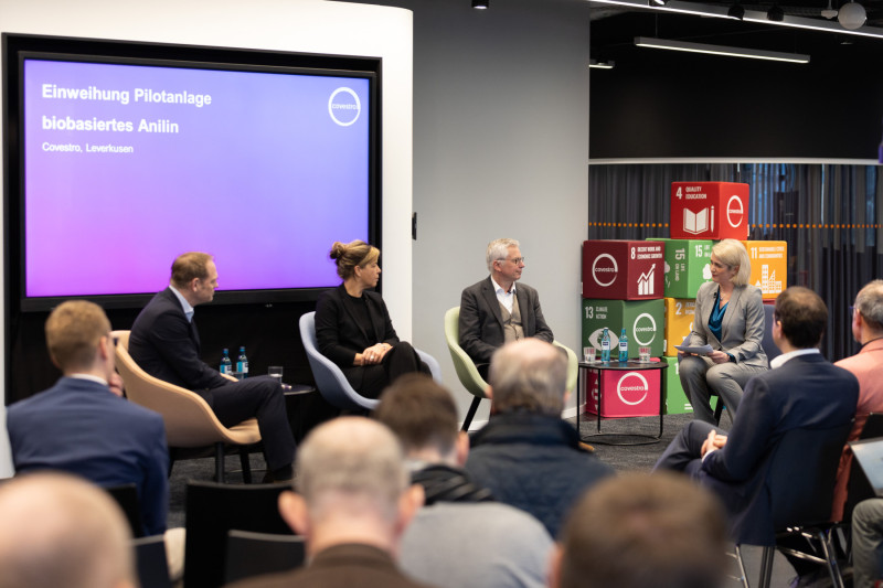 An der Einweihungsfeier nahmen auch Nordrhein-Westfalens stellvertretende Ministerpräsidentin Mona Neubaur sowie Professor Walter Leitner teil, geschäftsführender Direktor am Max-Planck-Institut für chemische Energiekonversion in Mülheim an der Ruhr. Gemeinsam mit Dr. Thorsten Dreier, Technologievorstand von Covestro, sprachen sie über die Bedeutung biobasierter Rohstoffe für eine nachhaltige Chemie der Zukunft.