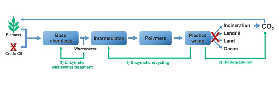 The overall objective of the junior research group is to establish enzymatic processes in the plastics industry to accelerate the transformation towards a fully circular economy. The junior research group focusses on three core topics: